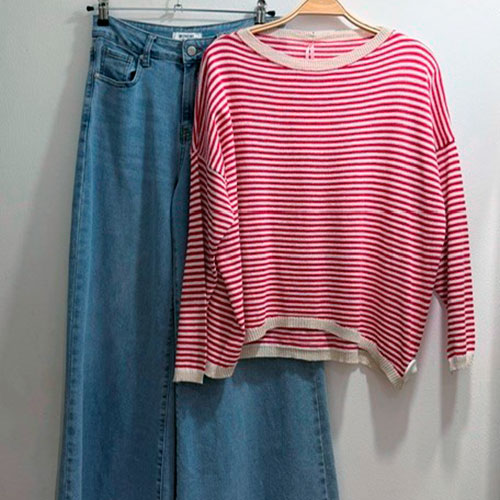 jersey rojo de rayas punto fino primavera